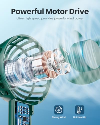 Gaiatop Mini Portable Fan, Navy Green, Cute Design, Rechargeable Battery, Handheld and Desktop, Small and Light